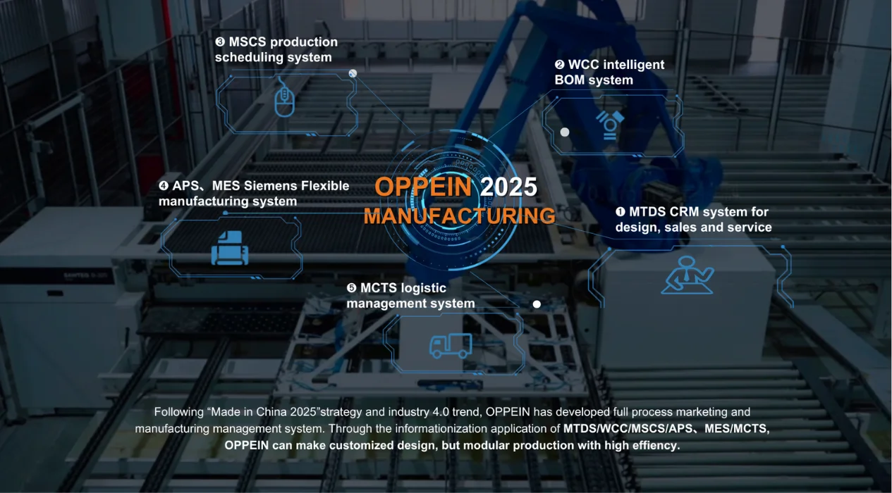 Các dây chuyền sản xuất tự động của OPPEIN, chủ yếu bao gồm các máy móc HOMAG của Đức, đảm bảo độ chính xác và ổn định trong sản xuất. Hệ thống thông tin, đặc trưng bởi dữ liệu lớn và điện toán đám mây, cải thiện đáng kể hiệu quả tùy chỉnh hàng loạt của chúng tôi.