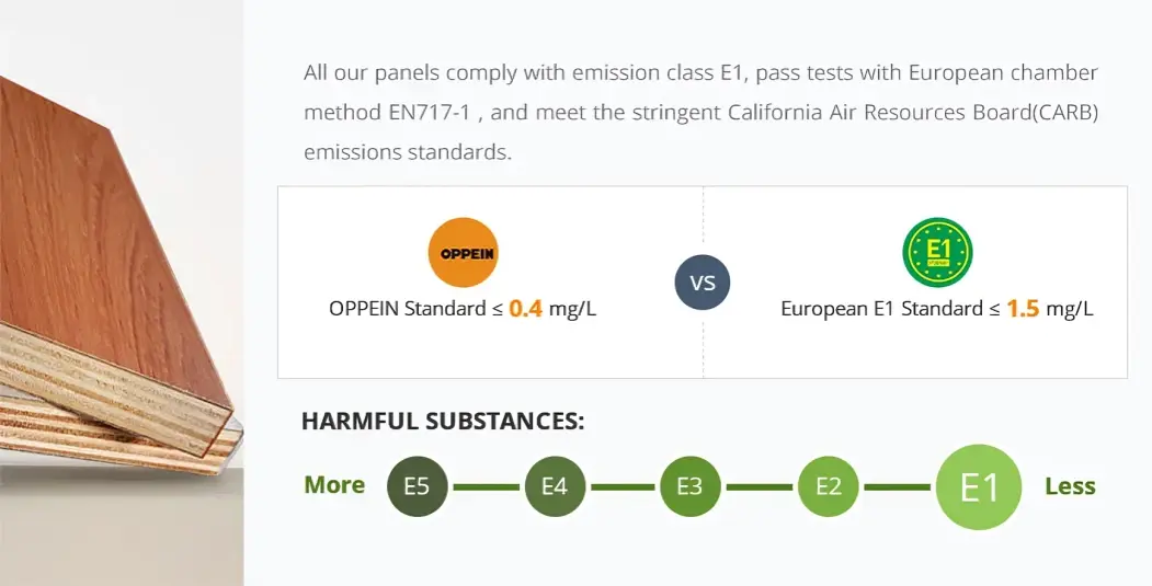 OPPEIN cam kết mang đến cho bạn và gia đình những món đồ nội thất an toàn cho sức khỏe. Tất cả nguyên liệu thô và quy trình sản xuất của chúng tôi đều đáp ứng tiêu chuẩn Euro E1 - biểu tượng của cuộc sống chất lượng.