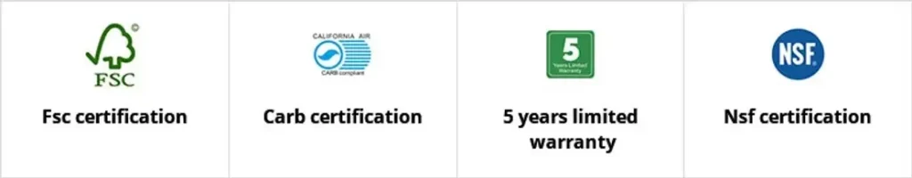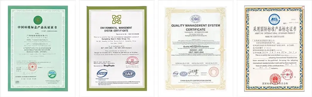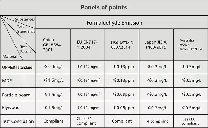Với nguyên liệu thô được lựa chọn nghiêm ngặt, tấm ván không formaldehyde (non-formaldehyde) của OPPEIN ( Theo Công nghệ Zero Formaldehyde, Chứng nhận NAF của Hoa Kỳ, Chứng nhận CARB của Hoa Kỳ), Silestone, Caesarstone và các loại Đá thạch anh nhập khẩu khác đều được Chứng nhận GreenGuard. Và đá thạch anh do OPPEIN tự sản xuất được chứng nhận NSF.