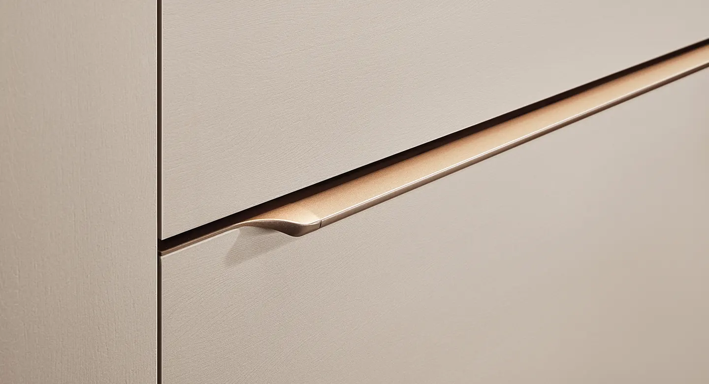 - Cánh tủ phẳng, chia mảng lớn theo phương ngang, dọc rõ ràng, hạn chế đường chỉ trang trí.