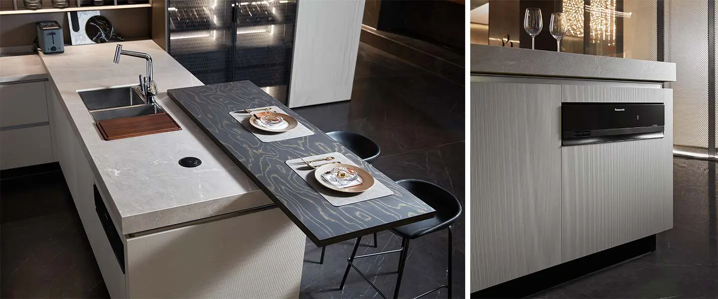 Máy rửa chén âm tủ (Panasonic) giúp tối ưu diện tích và nâng cao trải nghiệm tiện nghi.