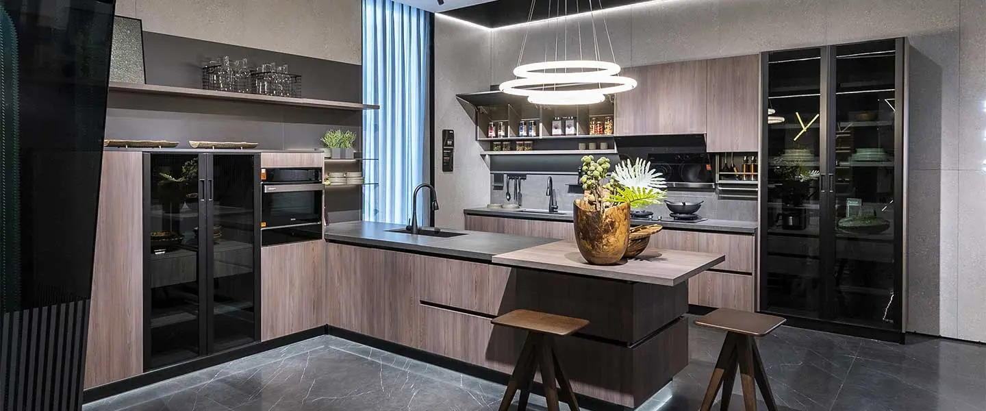 Lấy cảm hứng từ dòng tủ bếp MyDarling, MEDELLIN hướng đến việc phá vỡ bố cục truyền thống. Thiết kế tập trung vào không gian mở, kết nối phòng bếp và phòng ăn một cách tự nhiên, giúp căn nhà trở nên ấm cúng và gần gũi hơn. Điểm nhấn đặc biệt chính là tay nắm tủ tích hợp đèn LED, vừa tiện lợi khi sử dụng, vừa tạo hiệu ứng ánh sáng sang trọng và cá tính.