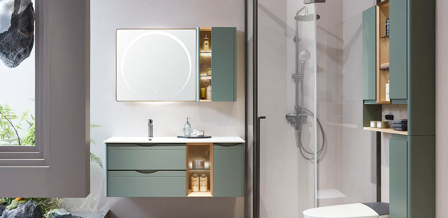 Mẫu tủ lavabo xanh lá xô thơm này là sự kết hợp hoàn hảo giữa vẻ đẹp thanh lịch và tính ứng dụng cao. Thiết kế tinh tế, thân thiện với người dùng cùng vật liệu chất lượng giúp sản phẩm trở thành điểm nhấn thời thượng, đồng thời đáp ứng nhu cầu sử dụng trong mọi không gian phòng tắm hiện đại.Hãy biến phòng tắm thành nơi thư giãn bình yên và mời gọi với mẫu tủ lavabo đầy cảm hứng này.