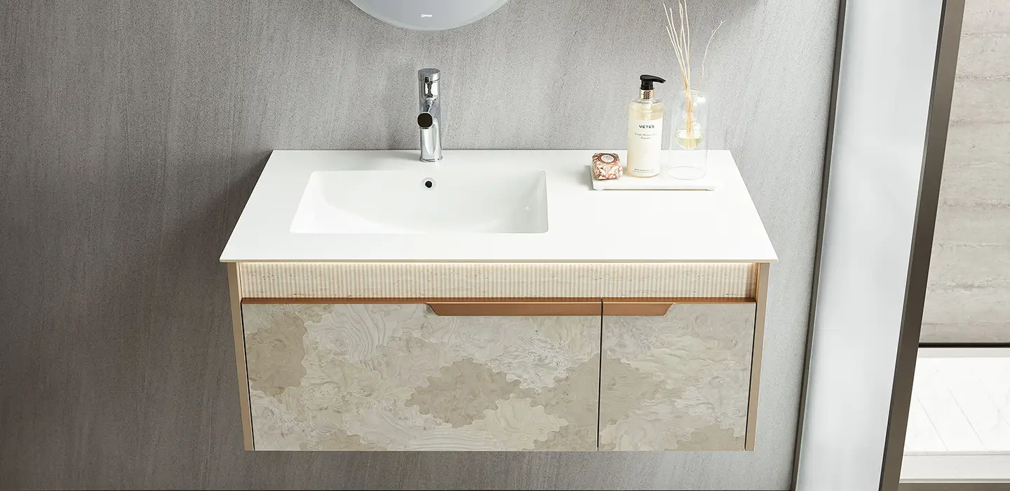Warm and Inviting Colors: The vanity combines warm, wood-like textures with cool stone patterns. This blend creates a comfortable and natural atmosphere reminiscent of traditional Chinese styles, making your bathroom feel cozy and inviting.