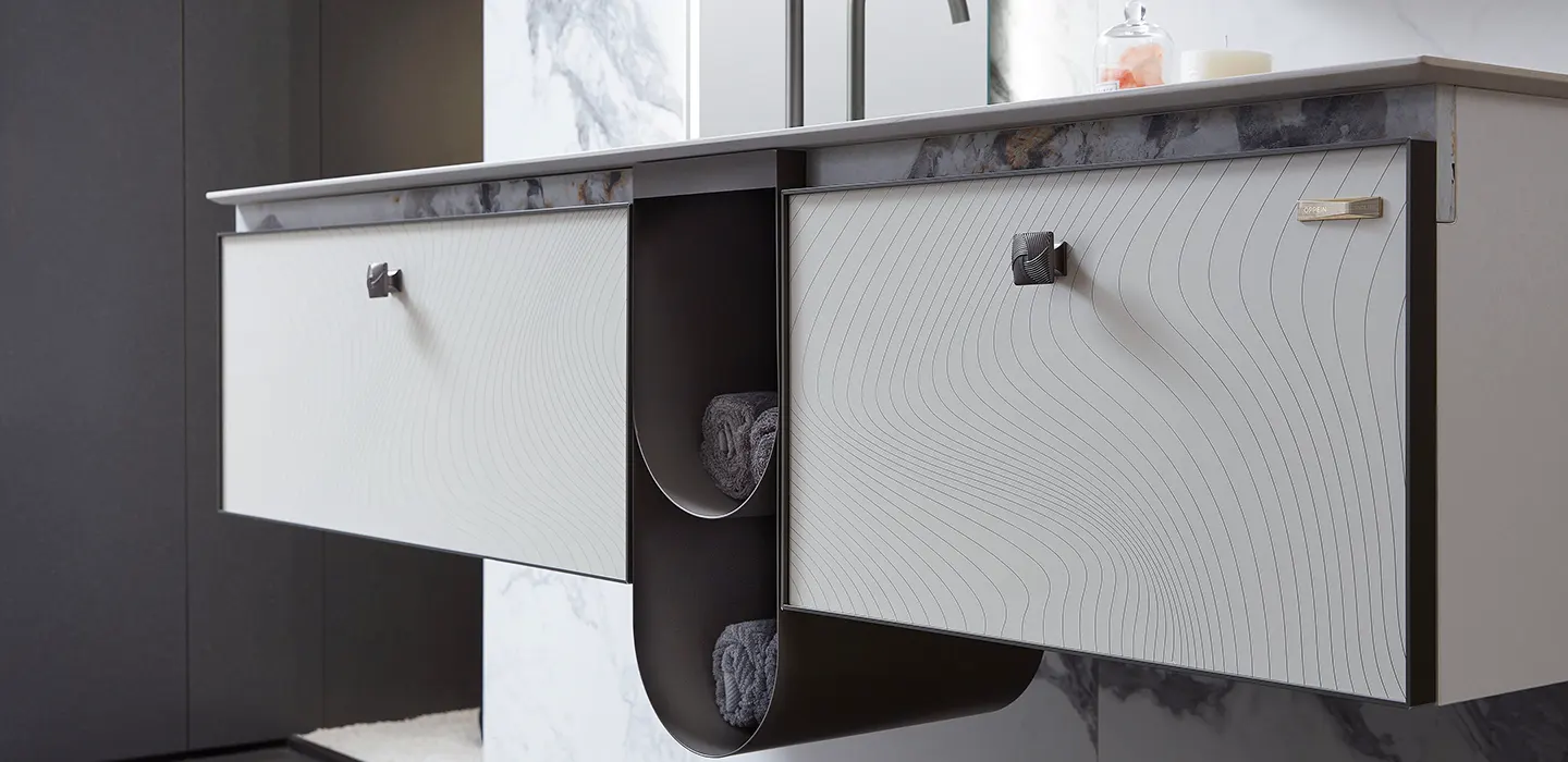 Functional Storage: Adopting a half-hidden, half-open layout, the vanity emphasizes the practicality of storage space.