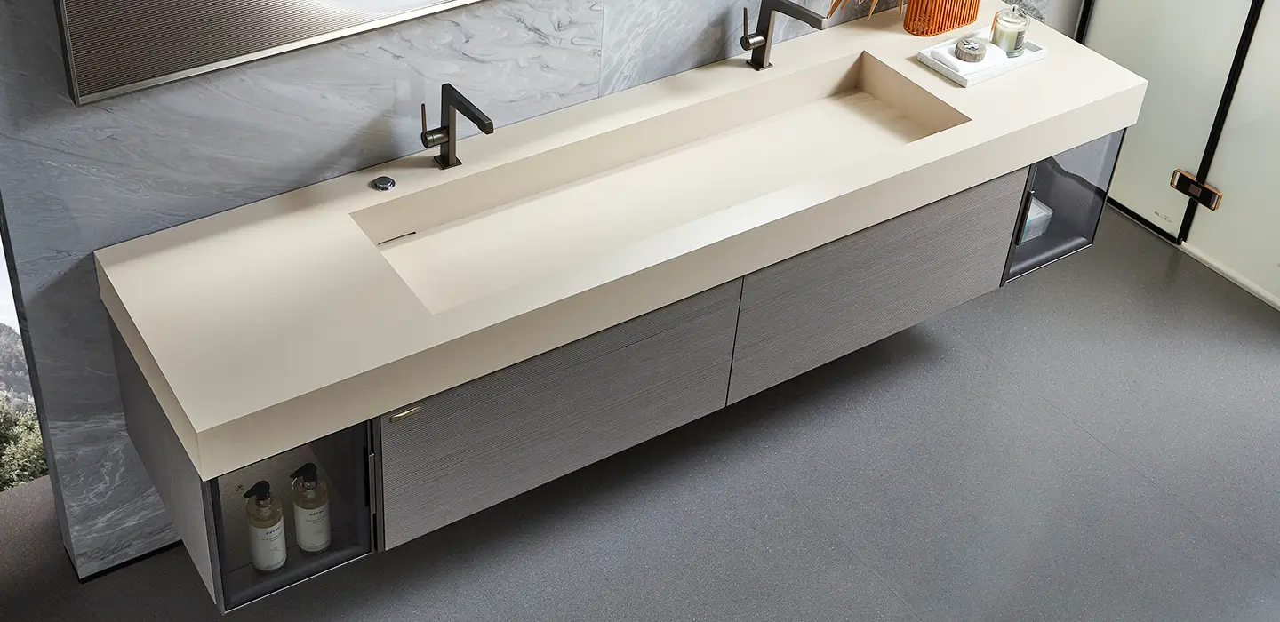 – The expansive basin supports a double-mirror layout, allowing ample space for two people to use it comfortably at the same time.